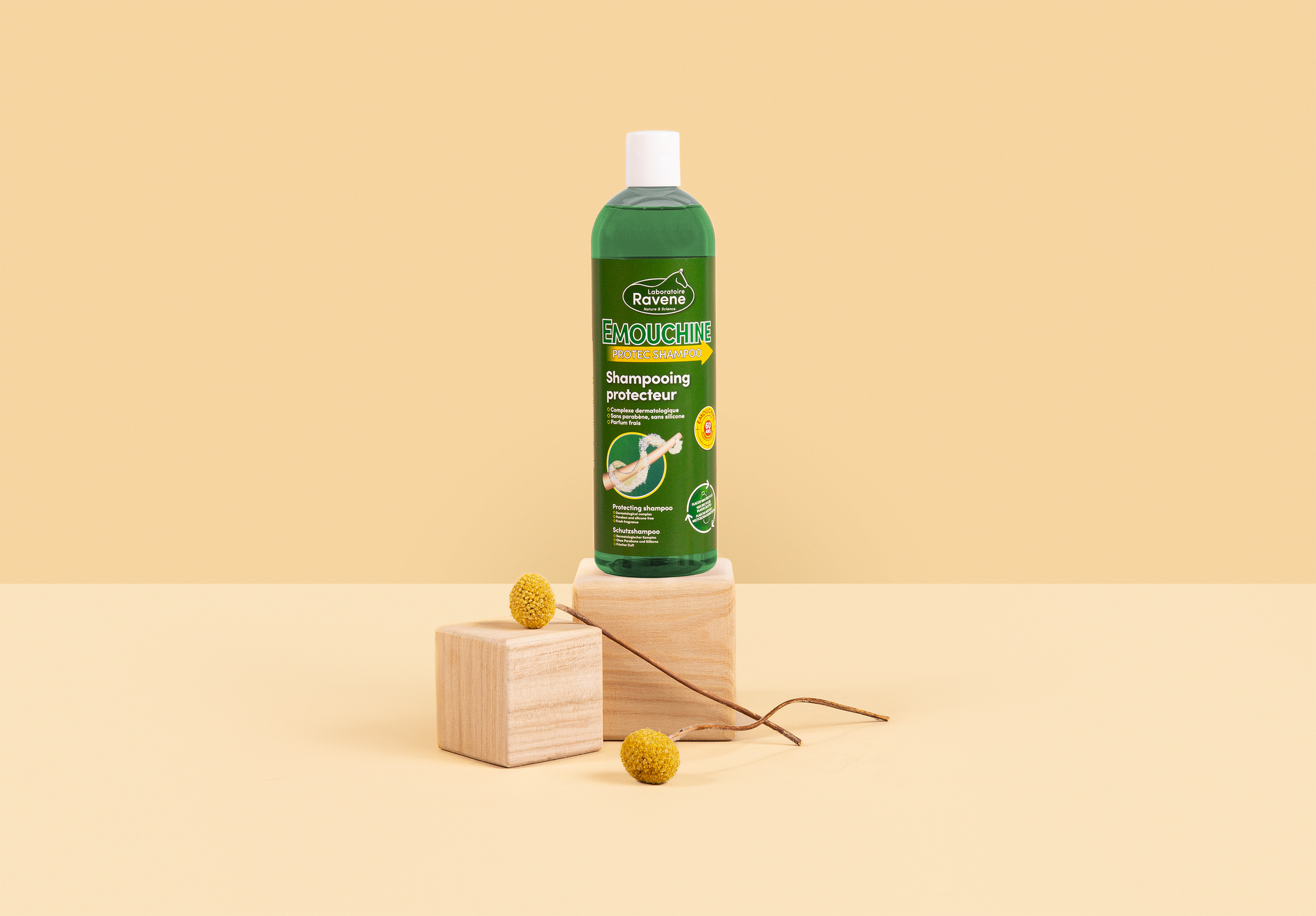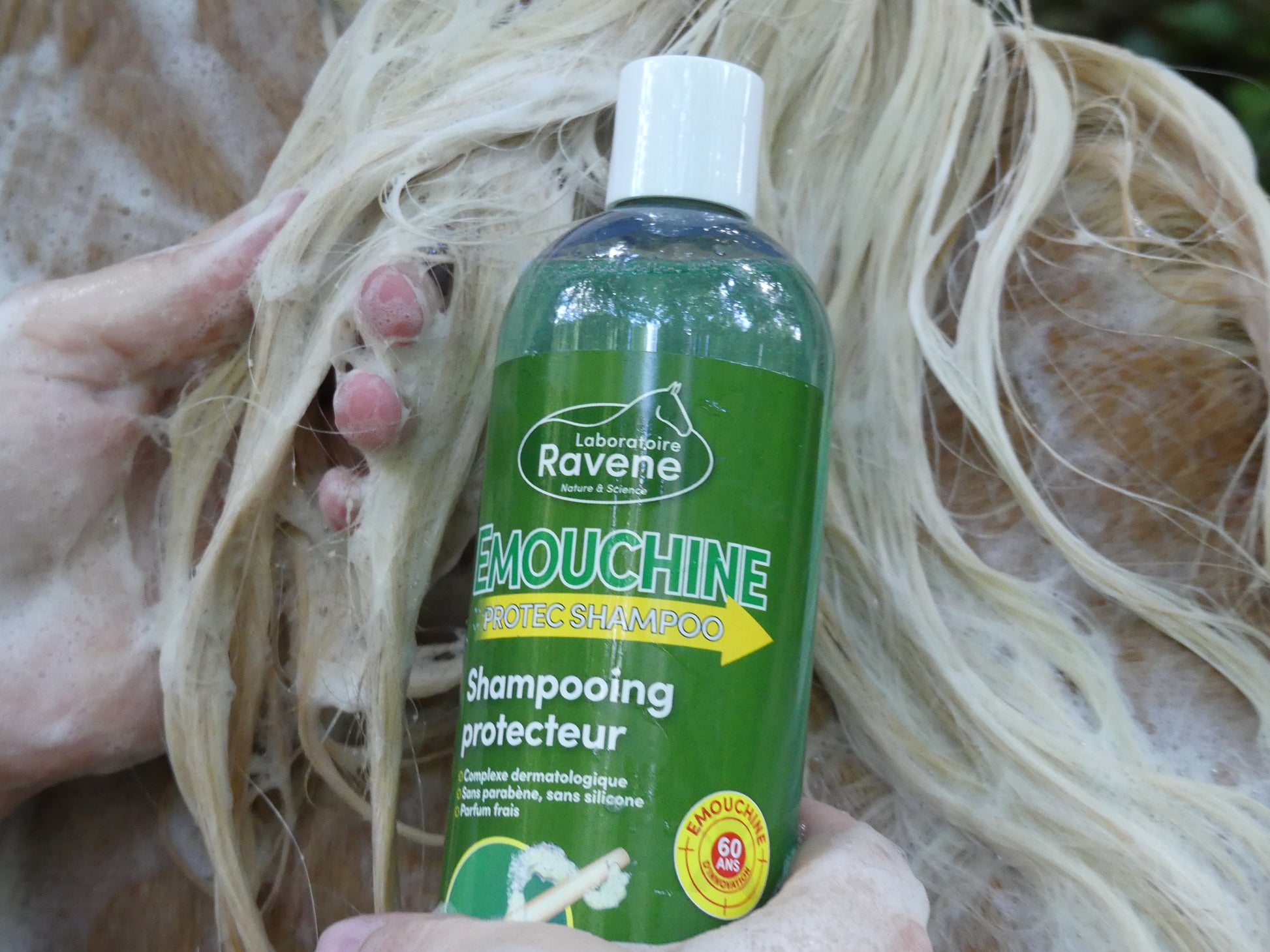 Emouchine Protec Shampoo tvättar varsamt hästens hårrem, gör pälsen synbart glansigare och ger ett lättare skydd mot insekter. Schampoot återupplivar färger och ger pälsen lyster igen utan att störa dess naturliga värden.