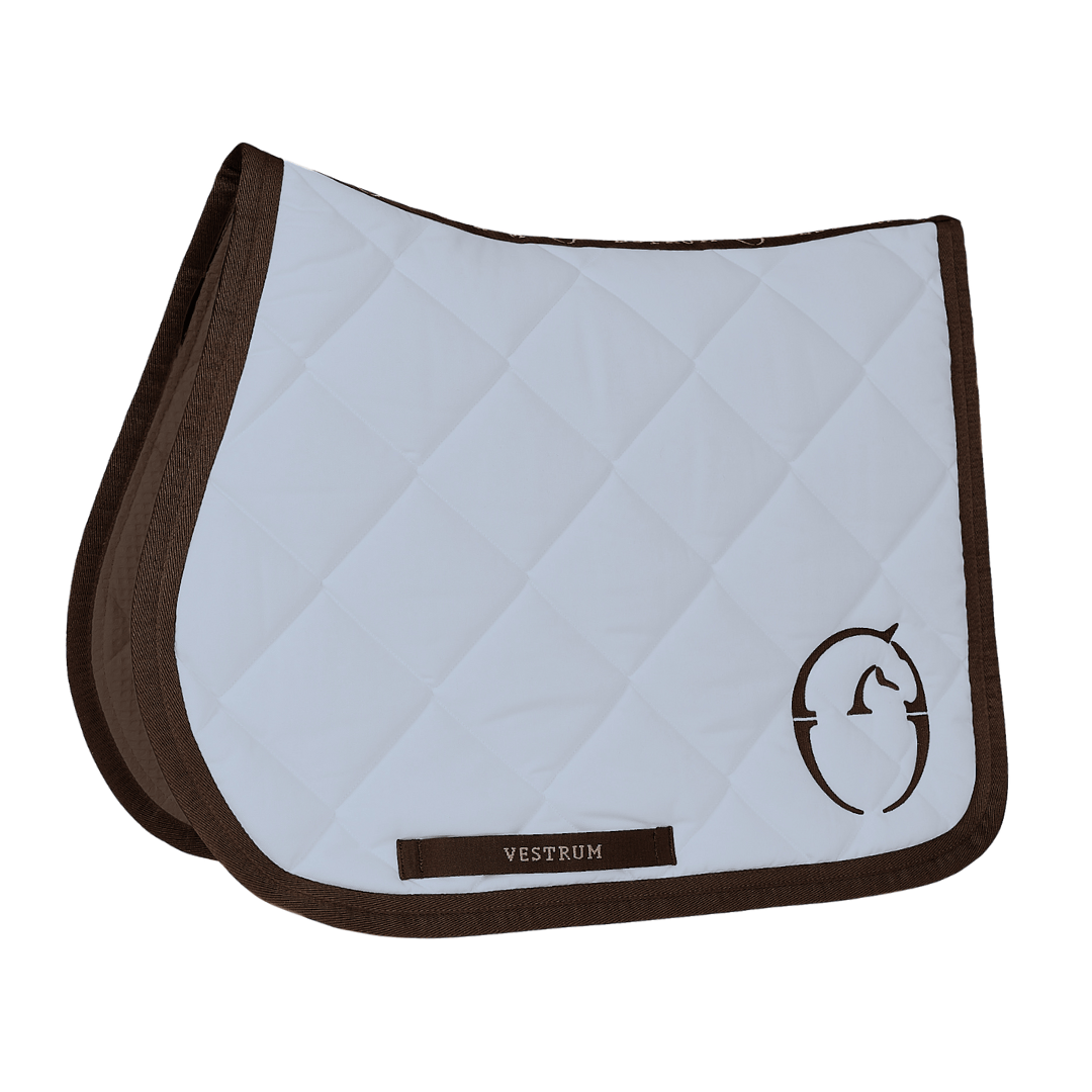 Så snyggt blågrått schabrak med stilrent mönster och detaljer i brunt! Lyxigt allround/hoppschabrak med fin passform från italienska Vestrum. Gjord i ett hög-tekniskt material som andas. Undersida i 100% bomull och våfflat mönster för att få ett bra men skonsamt grepp.