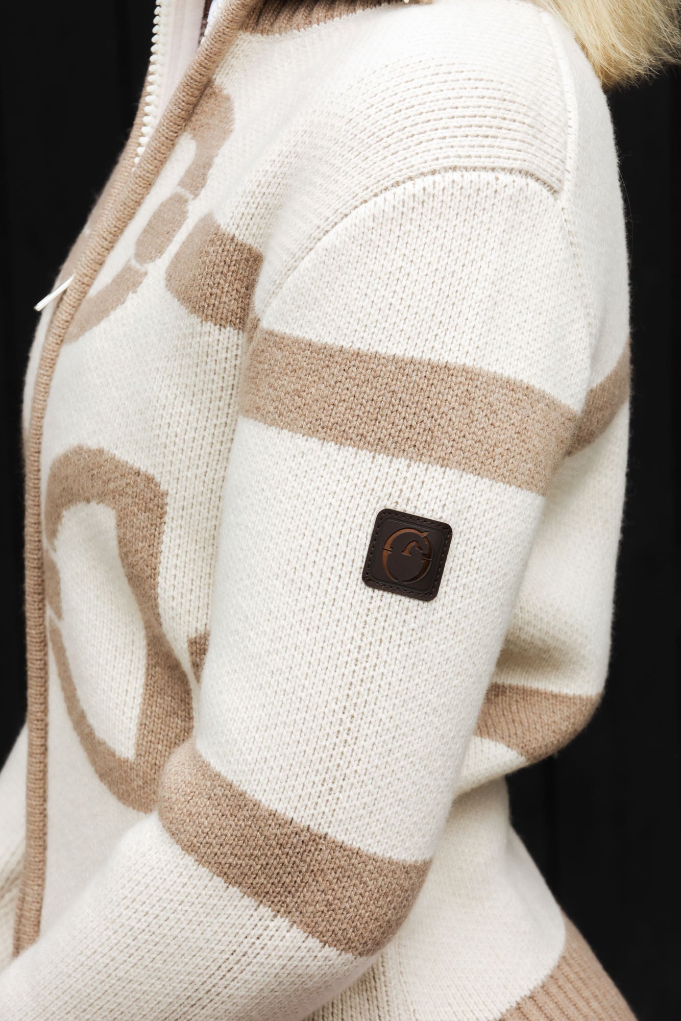 Tröjan är utsmyckad med dekorationer inspirerade av bettet, medan de ribbade kanterna på ärm- och fåll ger en touch av elegans och enkelhet. Looken kompletteras av Vestrum-logotypen, placerad på vänster axel.