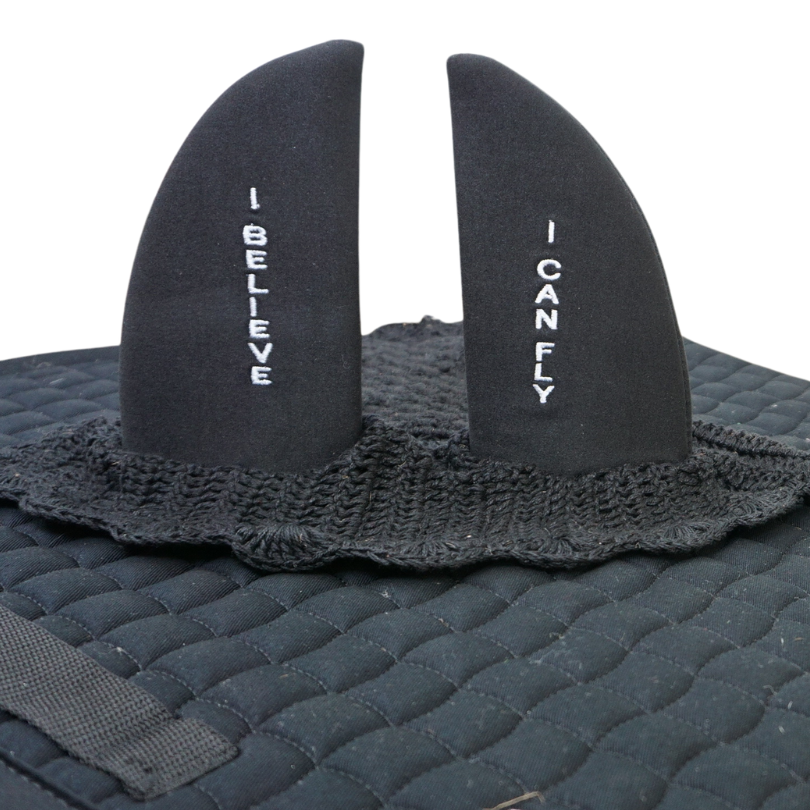Rolig huva med texten I believe I can fly. Perfekt på hoppträningen för dig med glimten i ögat!