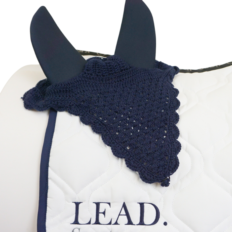 Huvan kommer i en lång och en kort variant och finns i svart och marinblå Den långa fästes i nosbandet med hjälp av medföljande gummisnodd. Den korta avslutas med en ton-i-ton snurrad passpoal. Storlek full.