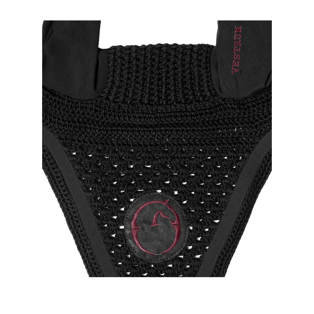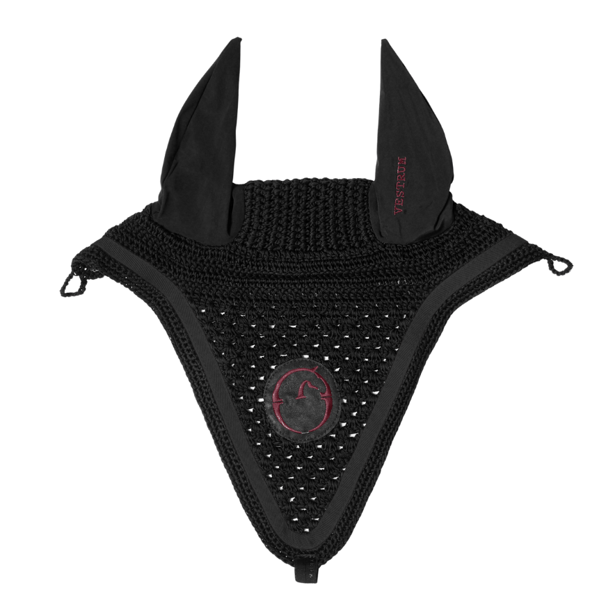 Svart, lång huva från italienska Vestrum. Huvan är helt svart med svart kantband förutom loggan som kommer i rosa. Även lilla VESTRUM-texten på öronen i rosa. Matchar fint med Bonn i svart som också har rosa logga!