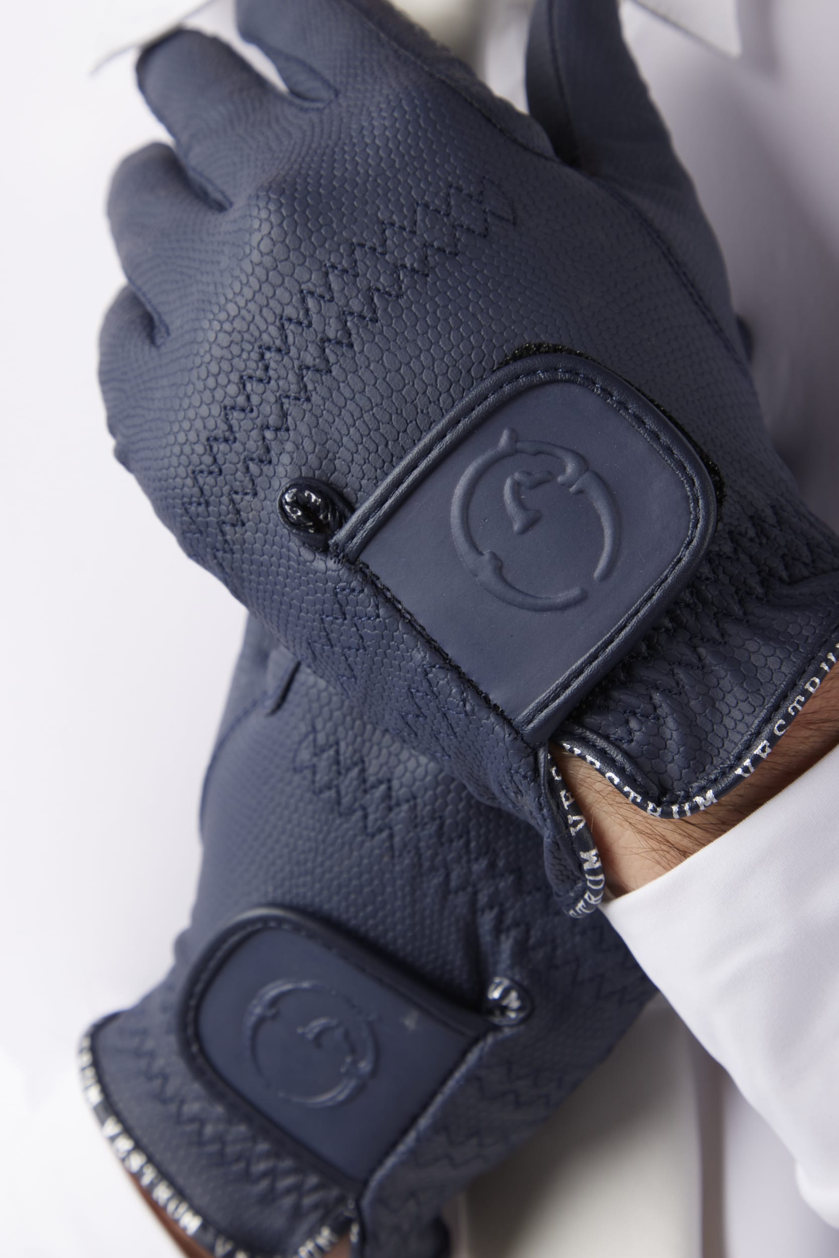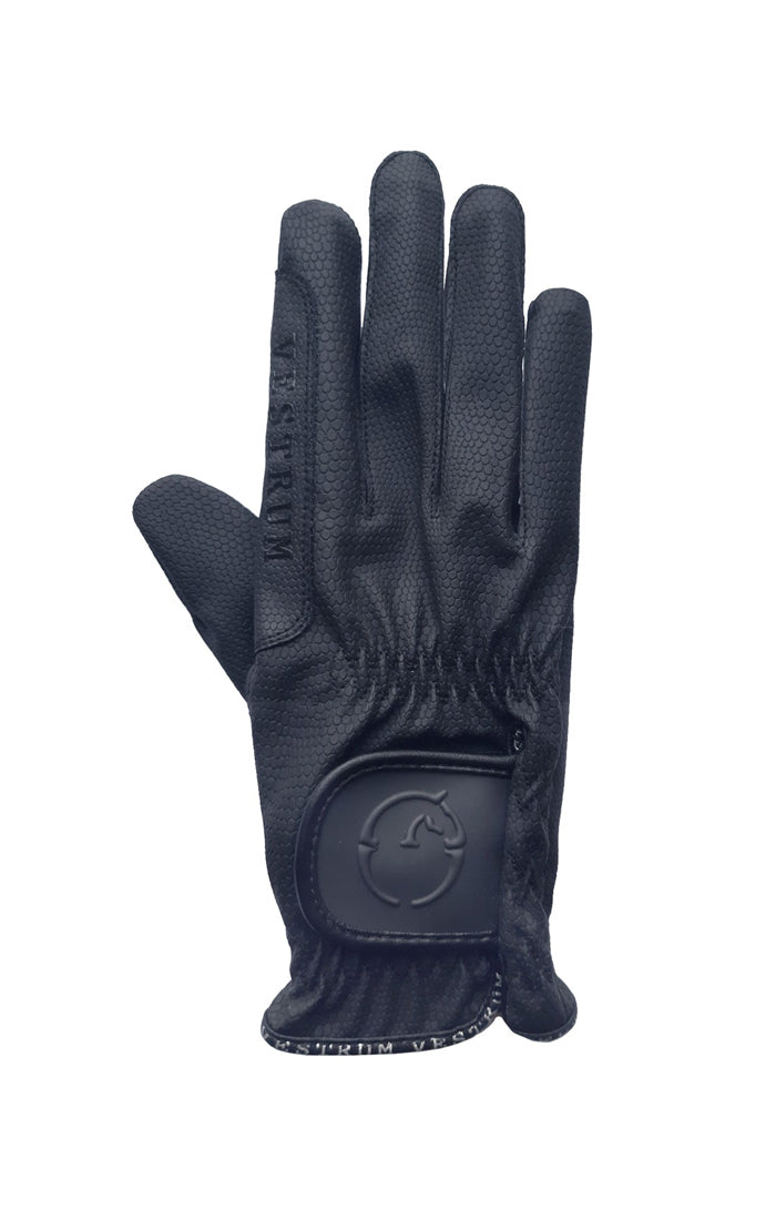 Tunna ridhandskar från Italienska Vestrum med utmärkt grepp. Unisex-handskar tillverkade i eko-läder. Ton-i-ton Vestrumlogotyp ovanpå den flexibla kardborreknäppningen samt diskret logotyp längs med öppningen på handskarna.