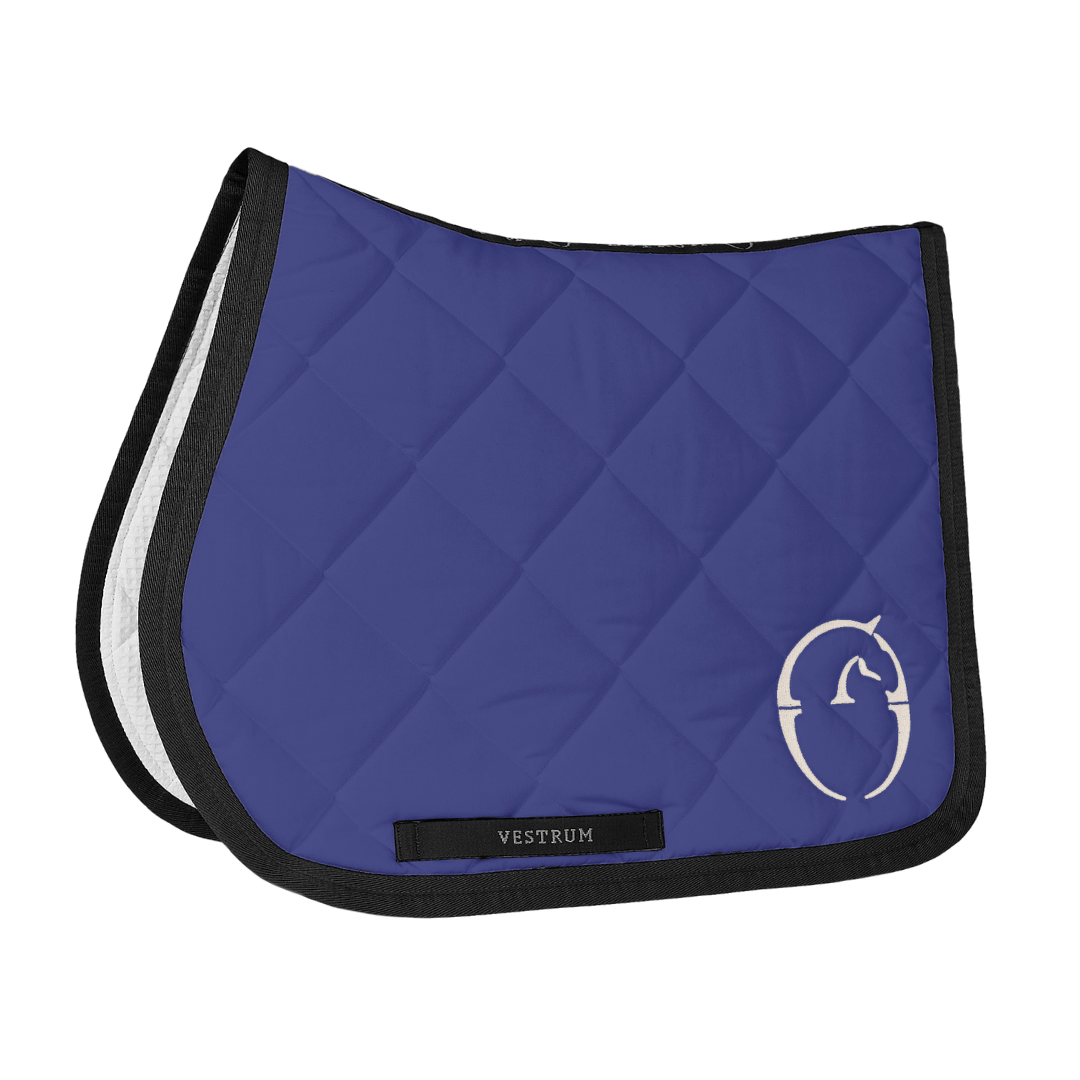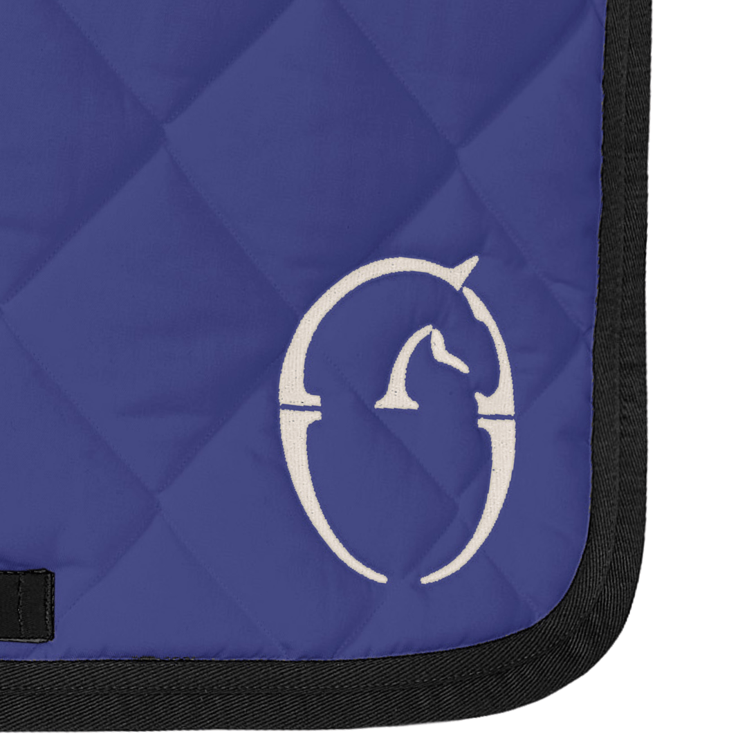 Här kommer modellen Bonn i klarblått med svart kantband och ljusbeige logga. Bonn har stora snedställda rutor och ett brett kantband samt hällor för sadelgjord.