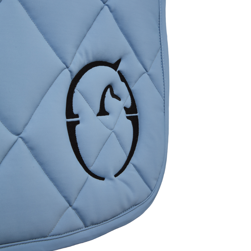 Piggt och fräscht schabrak i himmelsblå färg. Svart logga och svarta hällor på i övrigt helt blå botten. Låt färgen föra talan i detta stilrena schabrak utan krusiduller!